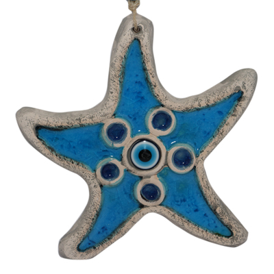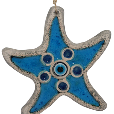 EVIL EYE LIGHT BLUE CERAMIC STARFISH WALL HANGING