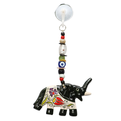 DO YOU LOVE TO WATCH A CUTE BABY ELEPHANT TRYING TO TAKE ITS FIRST FEW STEPS? IT IS A BEAUTIFUL SIGHT, ISN’T IT? THAT IS EXACTLY WHAT IS THIS GLASS AND CERAMIC HANGING IS ABOUT. IT IS A BLACK BABY ELEPHANT SUSPENDED ON A LITTLE ROPE LIKE STRUCTURE. THIS HELPS TO KEEP THE EVIL EYE (NAZAR) AWAY WHILE ALSO ADDING TO THE BEAUTY OF YOUR PARADISE.