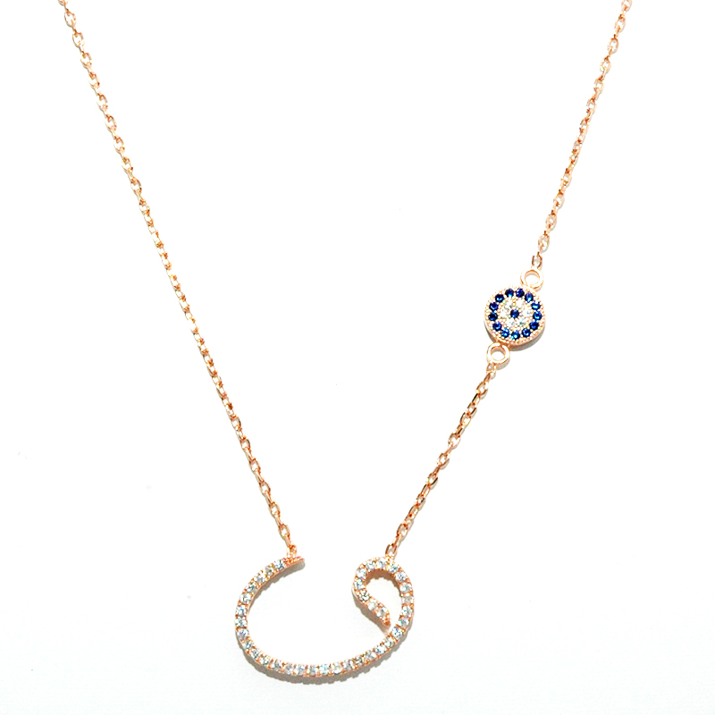DRESS UP WELL AND FEEL THE AIR AROUND YOU PUMP CONFIDENCE WHEN YOU WEAR THIS UBER GORGEOUS NECKLACE. THIS ROSE COLORED MASTERPIECE HAS A BEAUTIFUL PENDANT THAT BOASTS OF A COMTEMPORARY DESIGN. KEEP THE EVIL EYE (NAZAR) AWAY WITH THE HELP OF ITS CLEAR ZIRCON AND BLUE GEMSTONES WHILE LOOKING LIKE A DIVA THIS FESTIVE AND HAPPY SEASON.