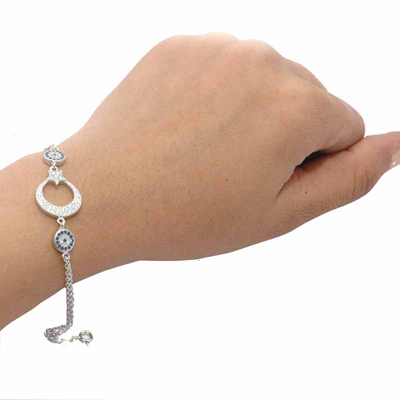 EVIL EYE SILVER CRESCENT MOON BRACELET