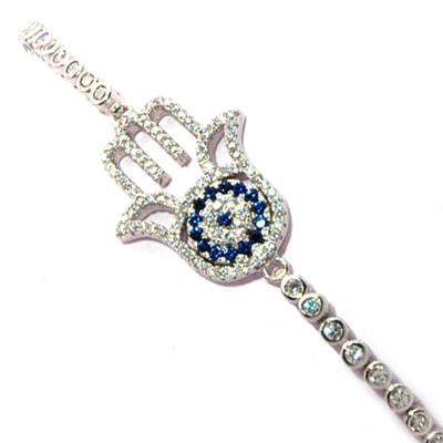 EVIL EYE SILVER HAND OF FATIMA BRACELET