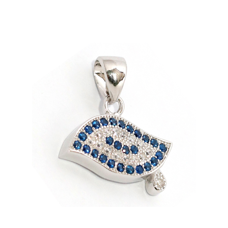 THIS GORGEOUS SILVER PENDANT IS WAITING TO BECOME YOURS TODAY. IT IS A PERFECT ACCESSORY TO ADD TO YOUR LOVELY AND ELEGANT COLLECTION. IT HAS THE MOST BEAUTIFUL SET OF BLUE AND ZIRCON STONES AND HAS THE ABILITY TO KEEP THE EVIL EYE (NAZAR) AWAY, ALONG WITH ALL OTHER FORMS OF NEGATIVE ENERGY. PICK THIS BREATHTAKING PIECE TODAY AND FEEL THOUROUGLY PROTECTED.