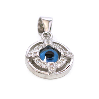 GIVE YOURSELF THIS BREATHTAKING PIECE OF JEWELRY THAT YOU’LL LOVE FOR ITS GORGEOUS AVATAR AND ITS POWER TO KEEP EVIL EYE (NAZAR) AWAY FROM YOU. THIS BEAUTIFUL PENDANT IS A PERFECT ORNAMENT WITH ITS CLEAR ZIRCON STONES AND BLUE ENAMEL IN THE CENTER. PAIR IT WITH YOUR CASUAL, PARTY, OR OFFICE LOOK AND LOVE THE COMPLIMENTS YOUR RECEIVE. BUY THIS TODAY WITHOUT FURTHER ADO.
